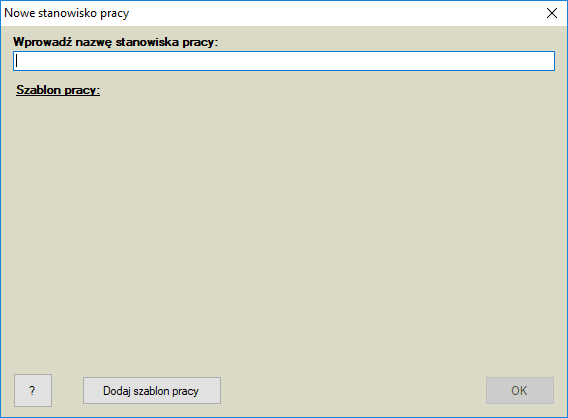 Wpisujemy nazwę nowego stanowiska i klikamy przycisk Dodaj szablon pracy, otwiera się okno szablonów. Nazwa stanowiska – może być dowolna - nie może się jednak powtarzać.