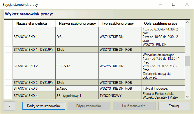 Aby szybko utworzyć nowe stanowisko wybieramy menu Zasoby->Stanowiska Pojawi się nowe okno przeznaczone do edycji stanowisk.